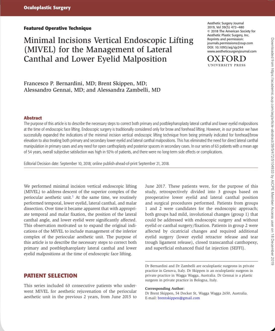MIVEL (Minimal Incisions Vertical Endoscopic Lifting)